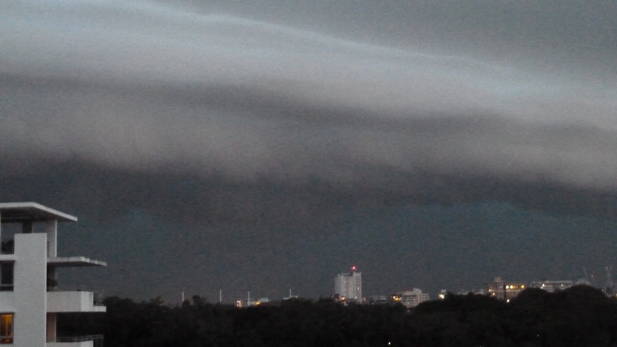 On the way back from a trip last weekend, we spotted this amazing cloud. The lower frill resembled cascading water. I had to veer off the Bruce Highway and dash to Deception Bay to get a better look. Ever in search of a roll cloud (see below), I dared to hope this might be the moment. I think, in fact, this was a shelf cloud, but I'm not a hundred per cent sure, and would love some advice from a seasoned cloud gazer.