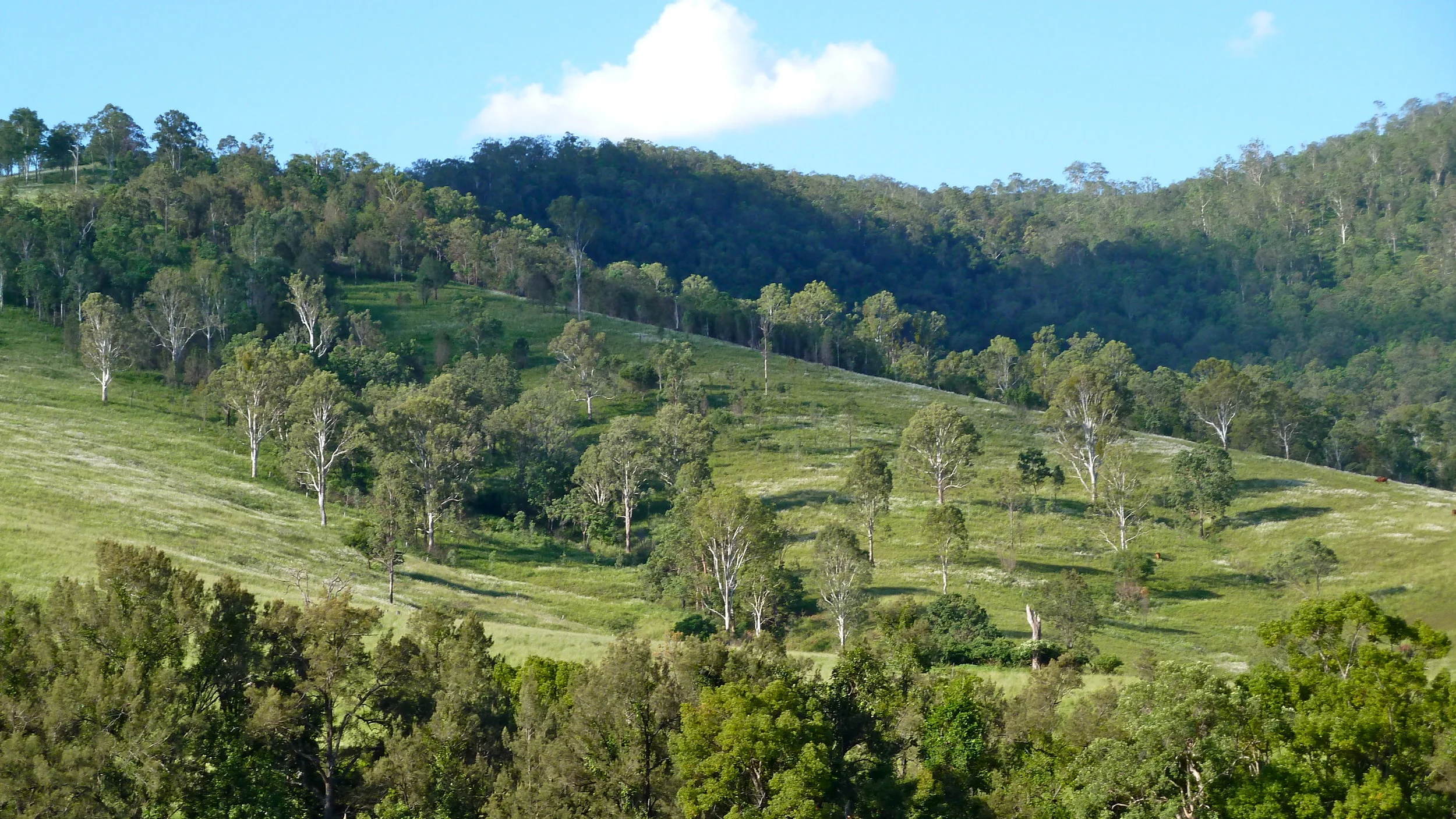 So, off we went. Up the Bruce Highway to Caboolture, along the D'Aguilar Highway to Kilcoy, and then north up the Kilcoy-Murgon Road for 60 kilometres (16 km beyond Jimna). The landscape both along the D'Aguilar and up to Jimna was beautiful on a warm blue-sky day.