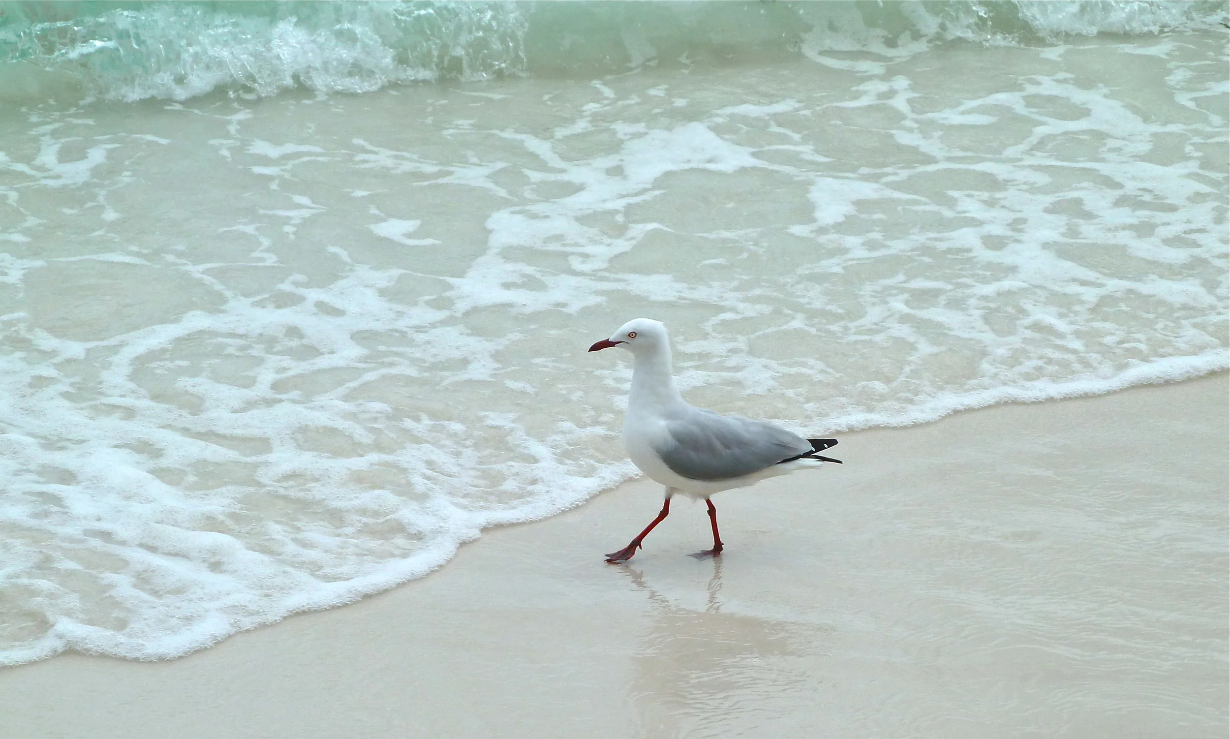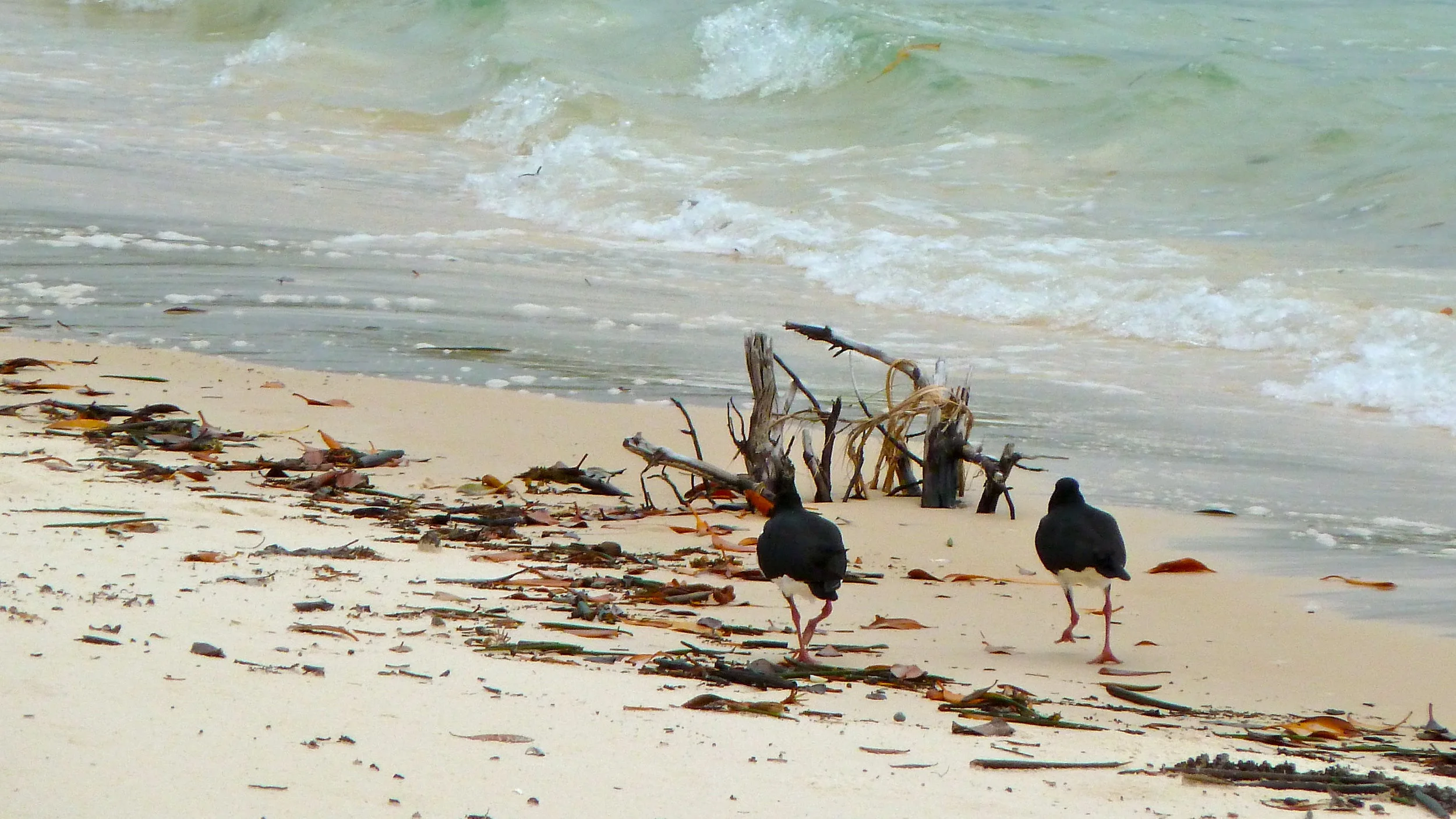 There wasn't much wildlife in evidence during our boat trip. We saw wallaby tracks in Whitehaven's sand and the real thing in Daydream Island's resort. A couple of Pied Oystercatchers were trying to avoid intruders on Whitehaven; and there were gulls, of course. But we didn't spot any soaring White-bellied Sea-eagles, Brahminy Kites or Ospreys; and we didn't see any sea life. One of our boatmen attributed this to them all taking refuge from the storms. Still?