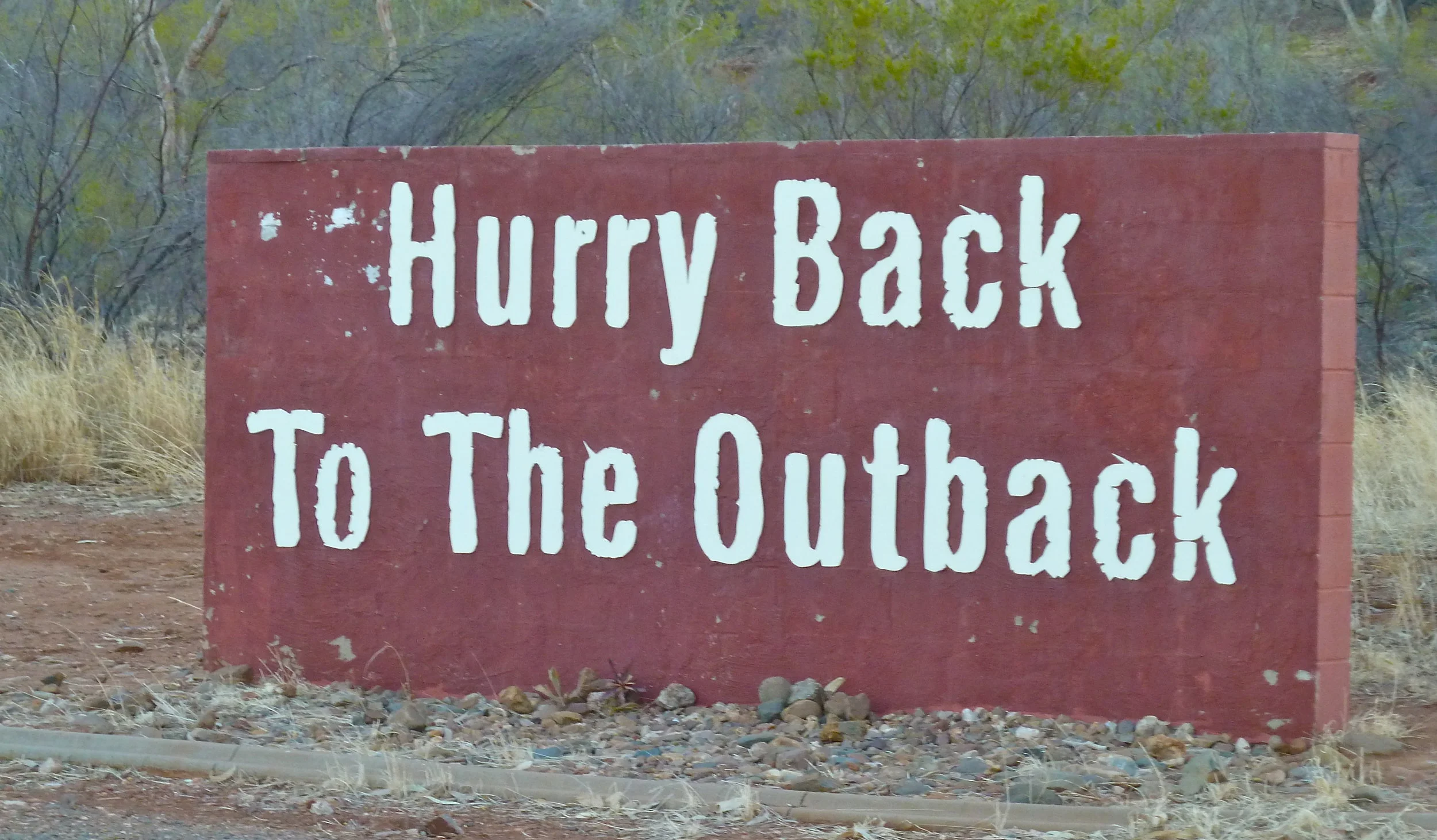 And, almost finally, a photograph that isn't a particularly good picture because I snapped it too quickly when I spotted a man with his dog and his swag leaving town. He could have been the man in Busby Marou's song, moving on to the next town. It struck me as essentially Outback. The sign we saw on leaving Cloncurry: I hope we will.