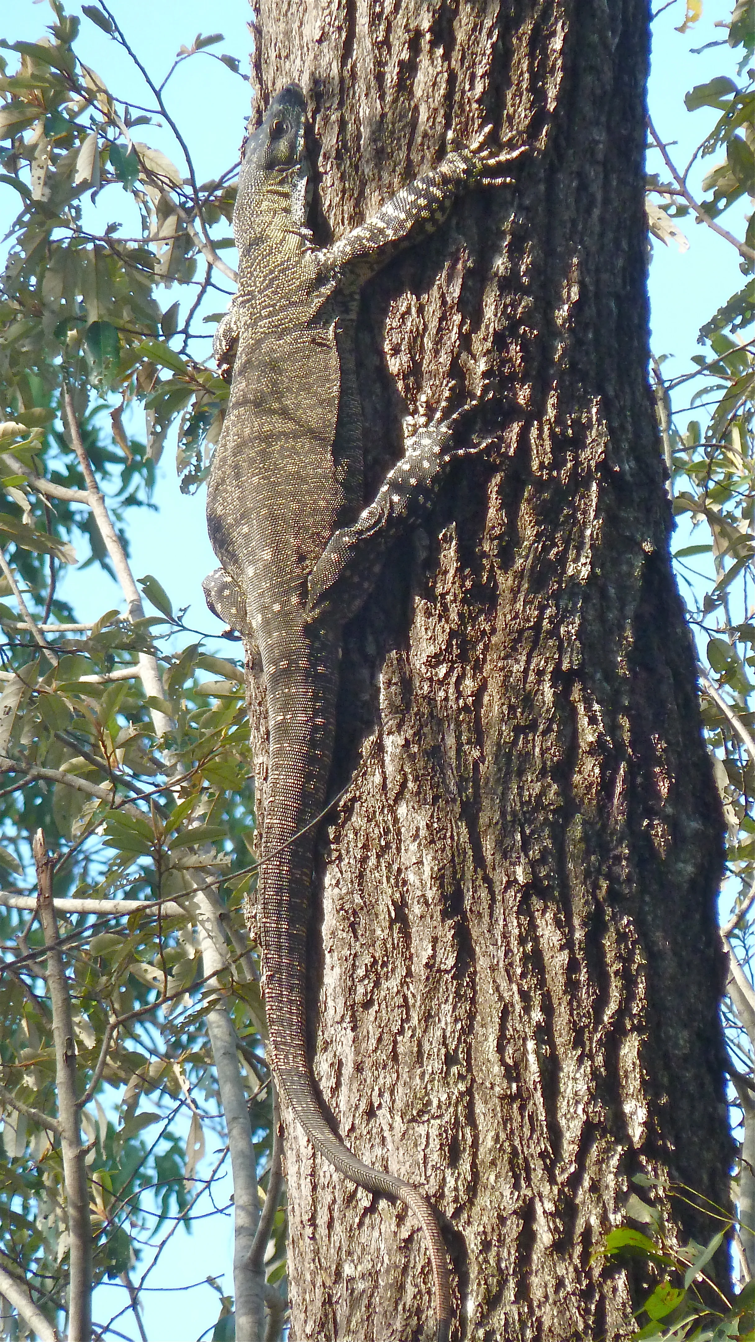 We passed a couple of walkers at one point who told us there were two koalas (I thought they said) round the corner. In fact, they'd said goannas, which we came across instead, much to my disappointment. The goannas redeemed themselves by tree-climbing, which always seems such an extraordinary feat for them, and these were big.