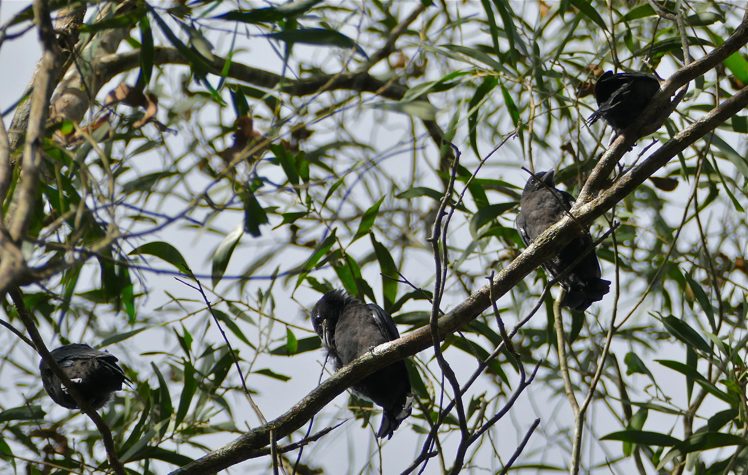 Fortunately for us unsociable, peace-and-quiet types, the path soon heads around a mini-inlet, out of earshot of the fun-loving shouty people. Immediately, some birds appeared. By the end of our relatively short walk we had seen two types of Fairy Wren (Red-backed and Variegated), Brush Turkeys, Pacific Black Ducks, Dusky Moorhens, Sulphur-crested Cockatoos, Ibises, Honeyeaters (possibly Lewin's), Magpies, a gang of four juvenile Torresian Crows, and possibly a Spangled Drongo. Heard but not seen were Eastern Whipbirds and Bell Miners (to us, aka Tink Tinks). Plus a couple of unidentifiables.