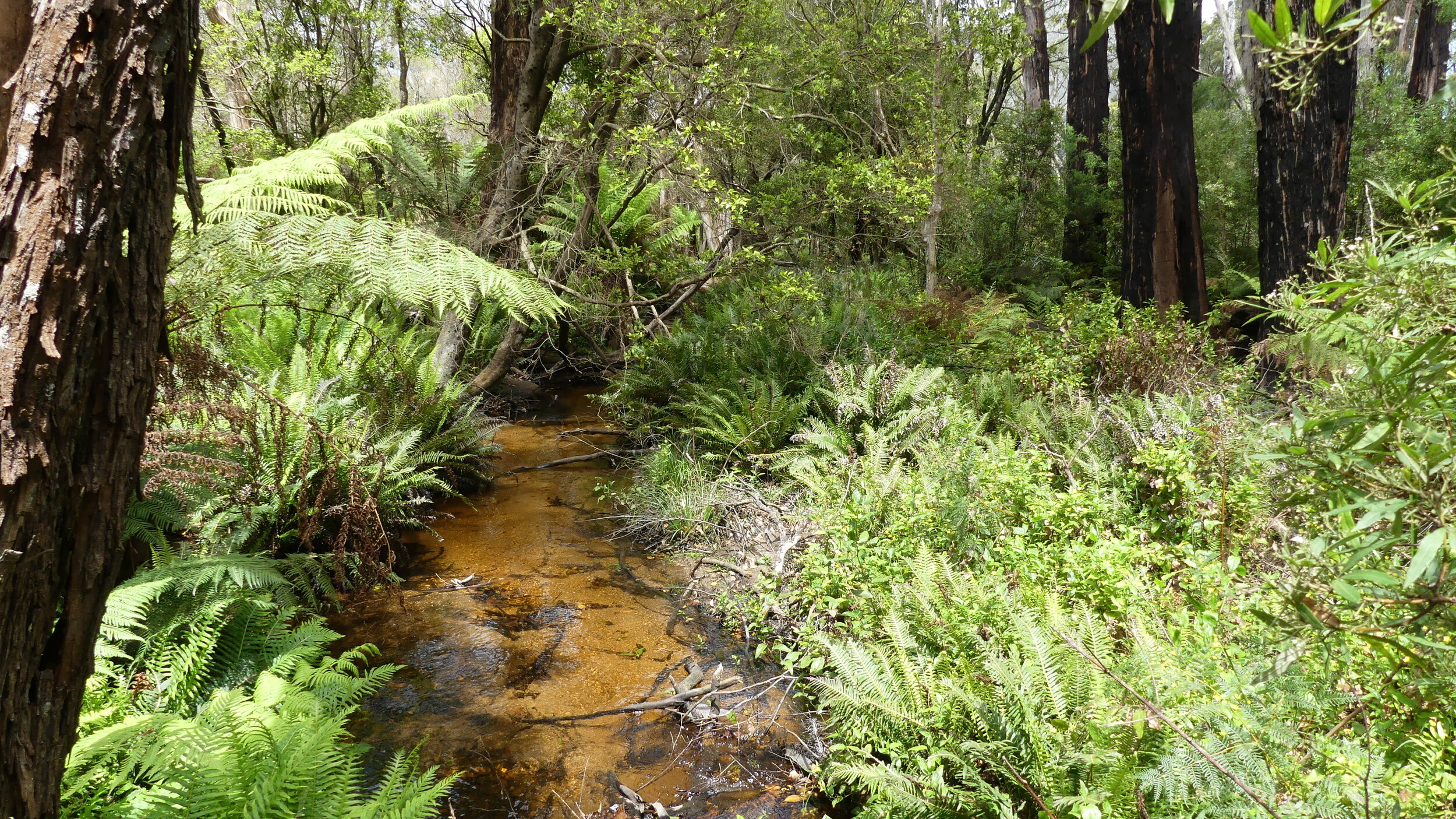 Halfway round the circuit is a 600-metre boardwalk through rainforest. We learned the most extraordinary thing there: in Lilly Pilly Gully lives the Lilly Pilly Burrowing (freshwater) Crayfish. A slow-flowing creek meanders across a flood plain, forming shallow pools on silty sandy loams that have a high organic content from rotting stems and leaves. The slopes adjacent to the flood plain are where the Crayfish dig burrows, which have chimney-like openings to the surface but no guarantee of water.