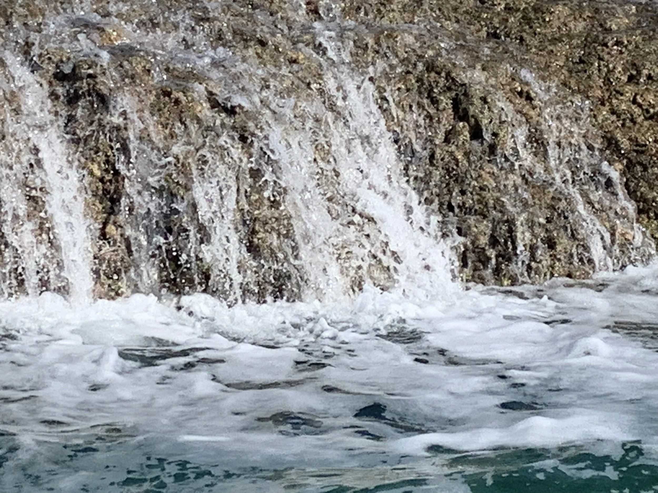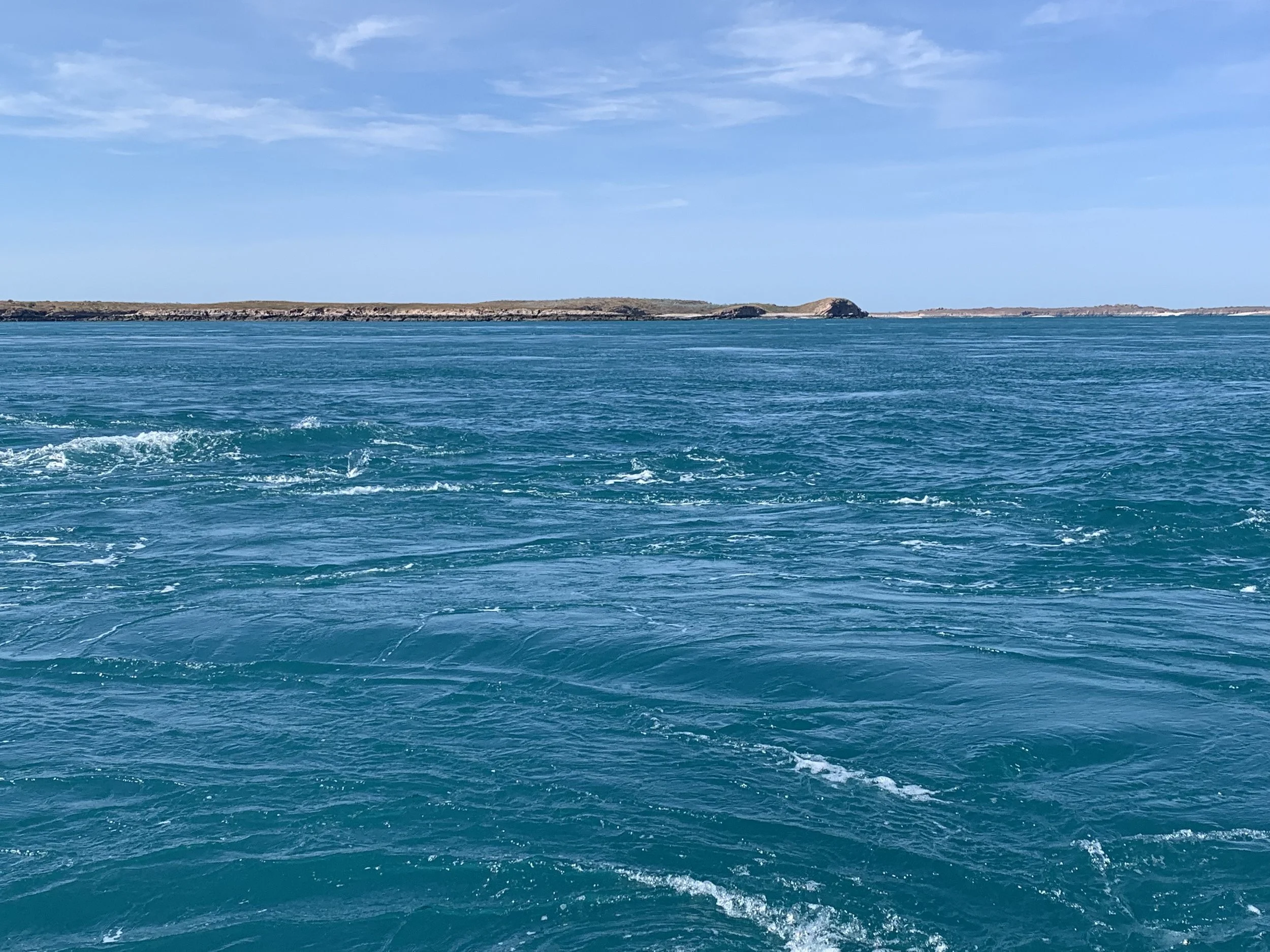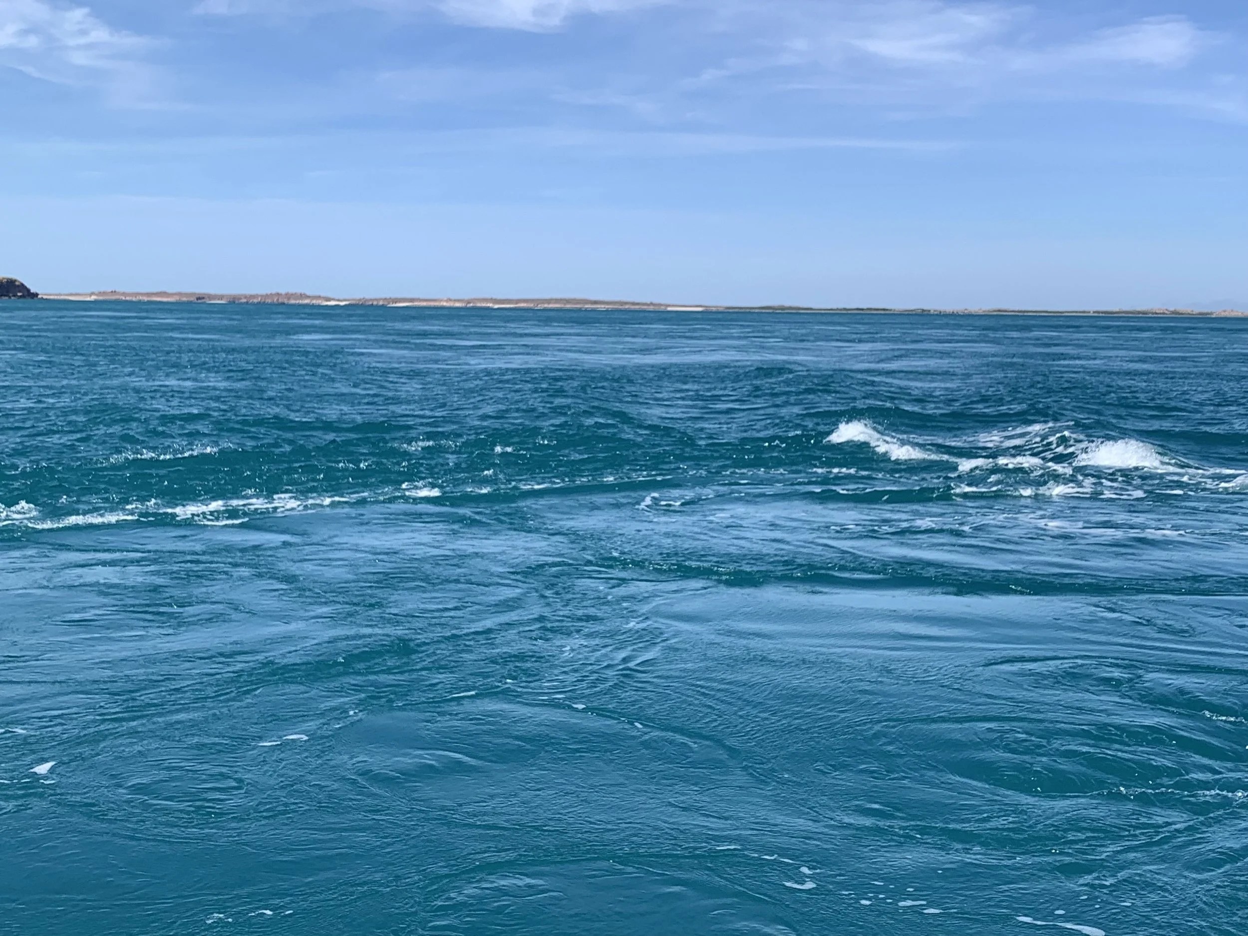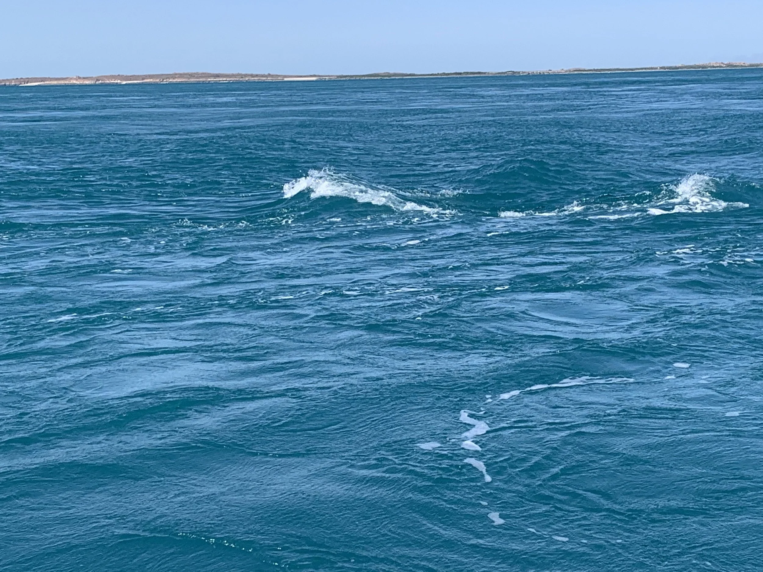 There were whirlpools and circular calm patches on the surface of the ocean: the calms reminded me of a whale’s ‘footprint’; the flat, smooth circle left after it flicks its tail or a fluke prior to diving into the deep.